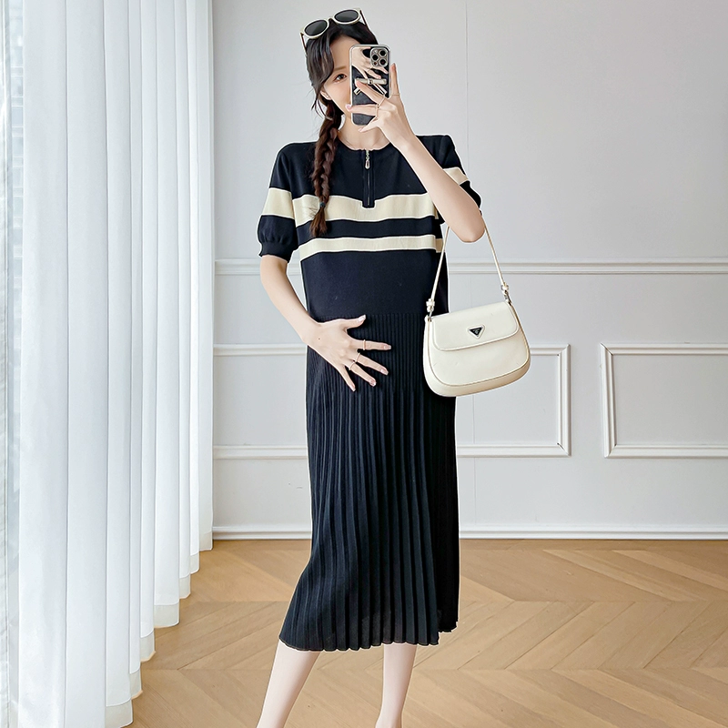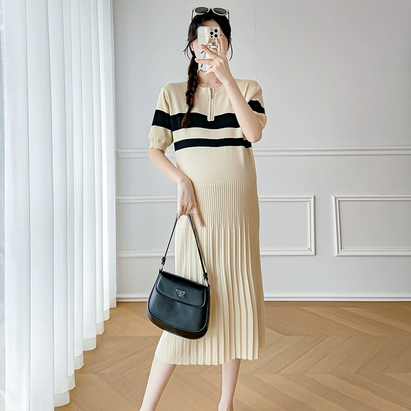 | nameOriginal | Color block short sleeve knitted dress Korean style maternity wear |