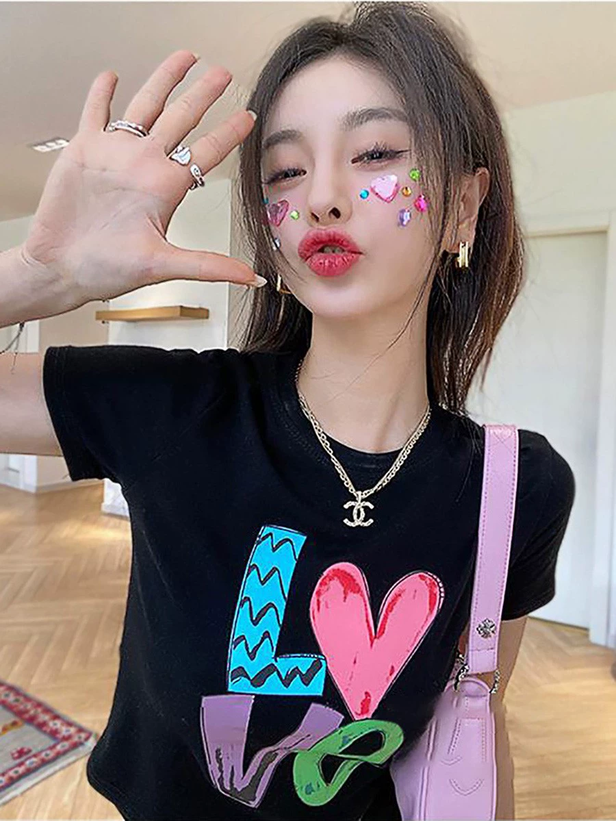 | nameOriginal | Alphabet Retro Hot Girl Slim Fit Printed Short Sleeve T-Shirt |
