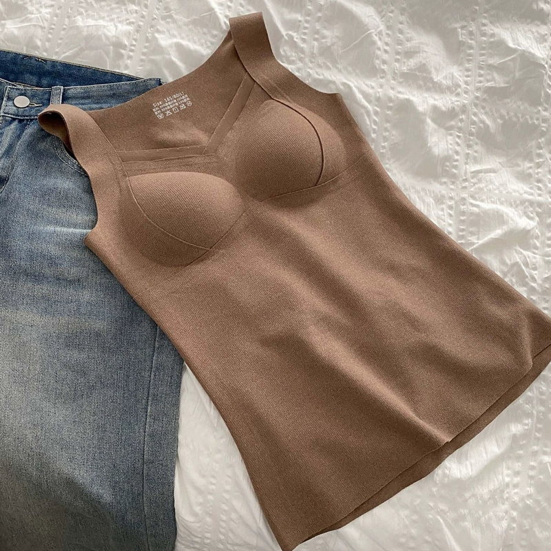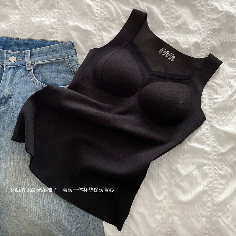 | nameOriginal | Seamless German velvet heated double-sided brushed thermal underwear women's vest fixed one-cup base layer top with chest pad |