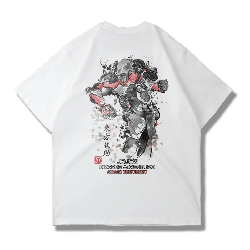 | nameOriginal | Tyrannosaurus Studio Japanese anime Jojo's Bizarre Adventure Jotaro Kujo short-sleeved T-shirt summer loose ins |