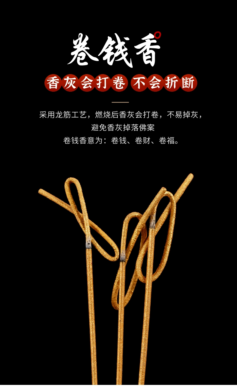 | nameOriginal | Roll money incense, God of Wealth incense, smoke-free incense, household ritual Buddha incense, sandalwood incense, Guanyin Bodhisattva incense, fairy family Guan Gong incense, gold incense |