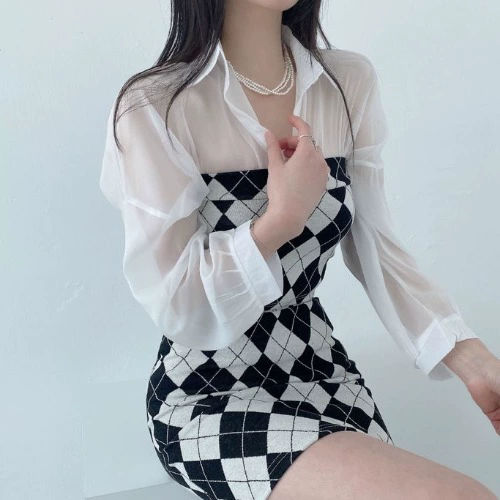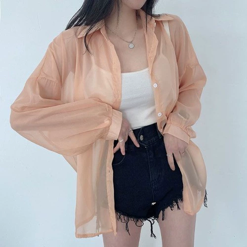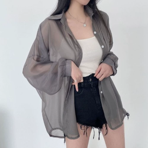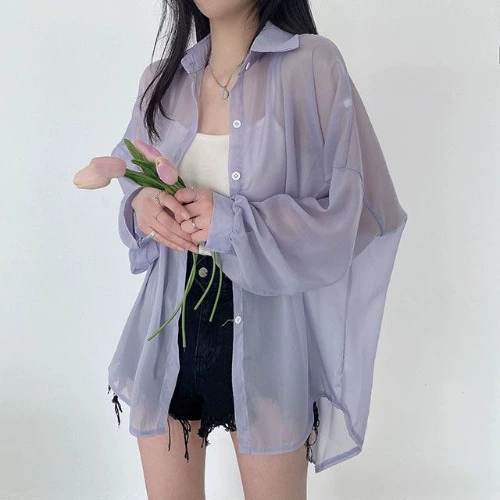 | nameOriginal | Korean chic summer lazy style loose and versatile candy-colored see-through thin mid-length chiffon sunscreen shirt for women |