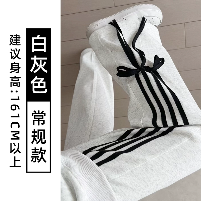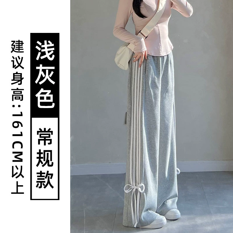 | nameOriginal | Gray Bow Sweet Cool Sports Pants Women's Spring and Autumn 2024 New High Waisted Casual Wide Leg Pants Loose Straight Sweatpants |
