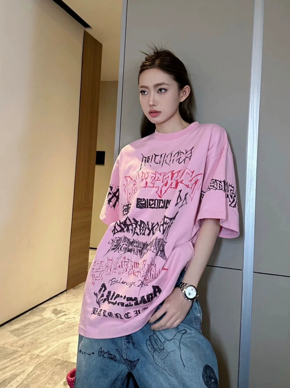 | nameOriginal | Summer new trendy brand Chen Ze's same style Paris printed graffiti letters short-sleeved T-shirt for men and women couples loose half-sleeved |