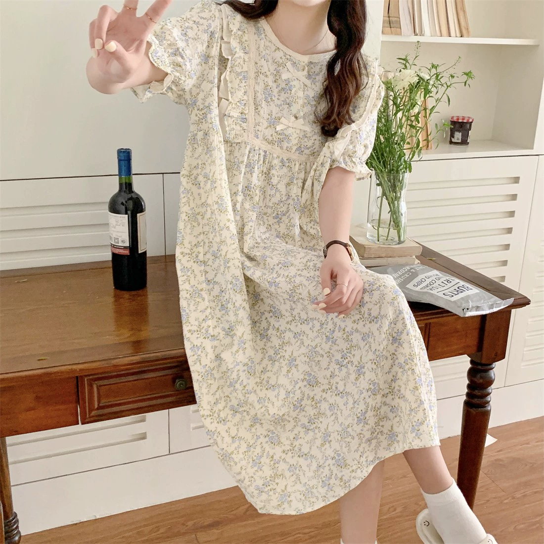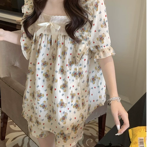 | nameOriginal | Pajamas for women summer short-sleeved shorts Korean version sweet and cute bear pure cotton gauze home clothes two-piece suit |