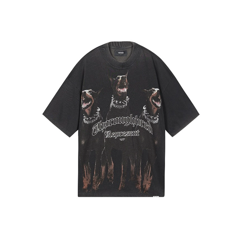 | nameOriginal | Ceiling REPRESENT Doberman Pinscher three big dogs washed and distressed men's and women's loose short-sleeved T-shirt |