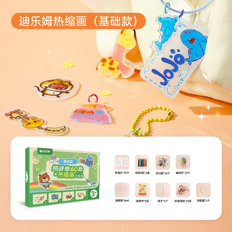 Magic heat shrink painting children’s creative heat shrink sheet DIY set kindergarten handmade material package homemade pendant toys
