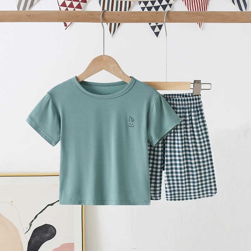 | nameOriginal | Modal pajamas for children summer thin boys and girls summer medium and large children short-sleeved home clothes set |