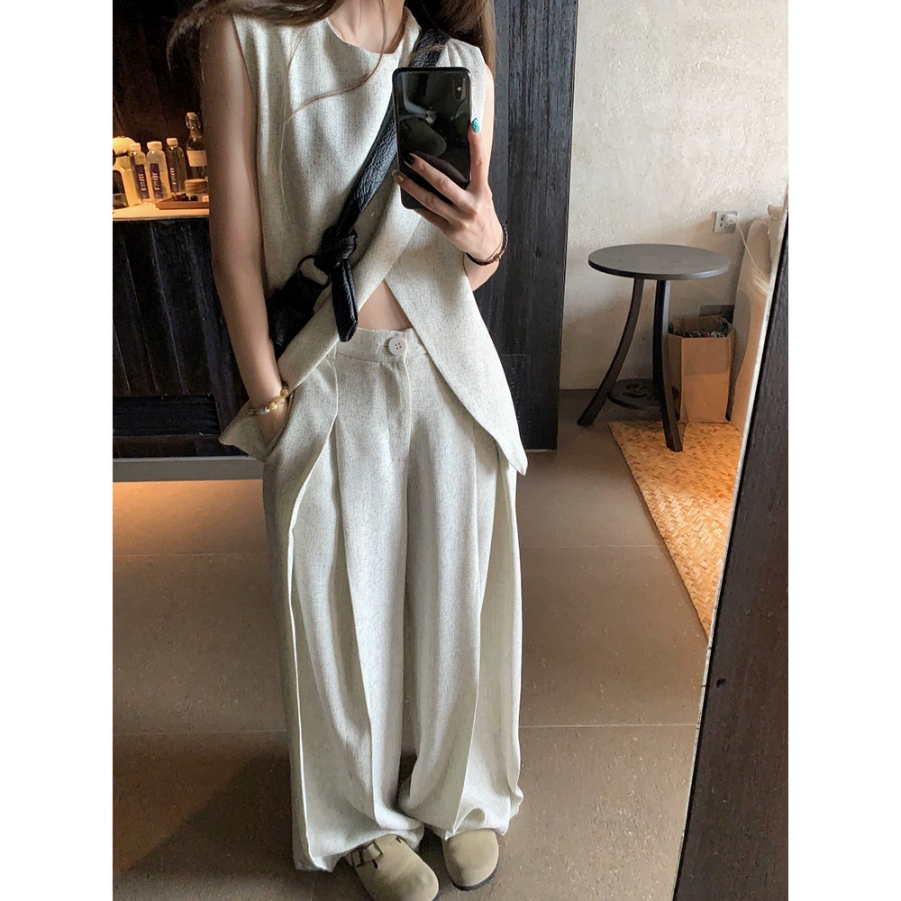 | nameOriginal | Floor-length casual pants and vest with slit at the hem |