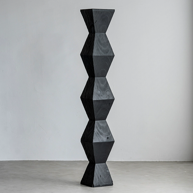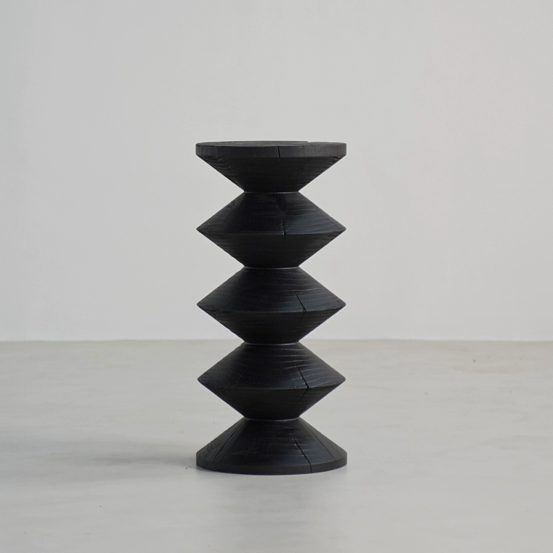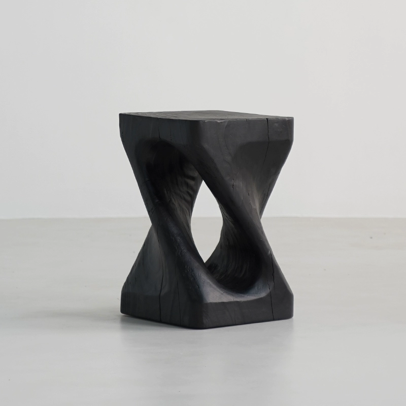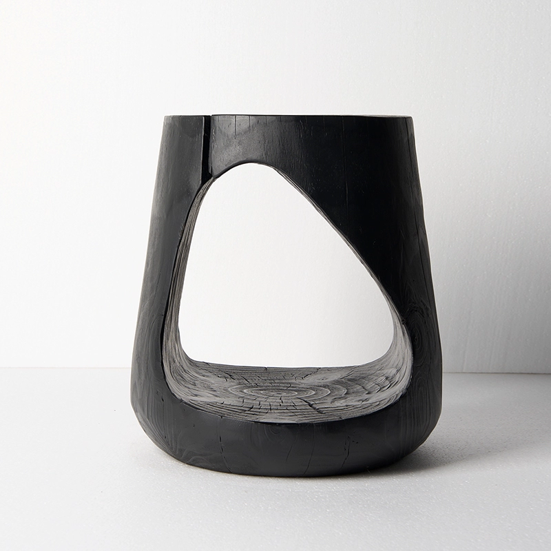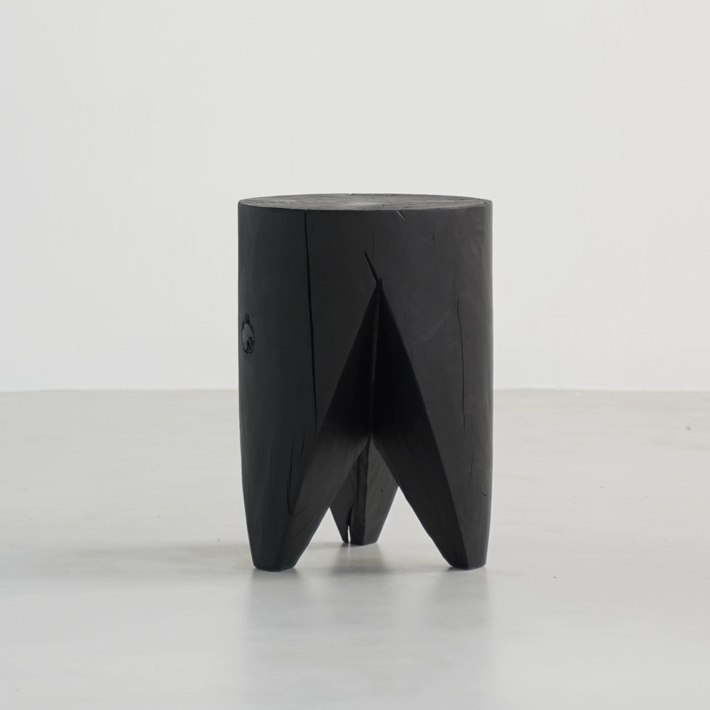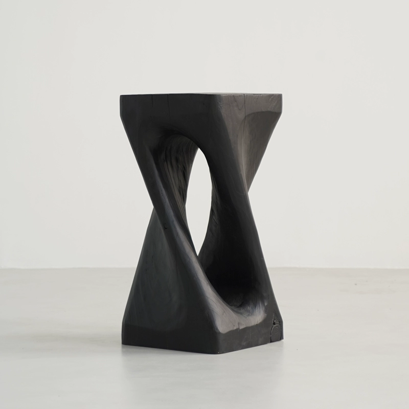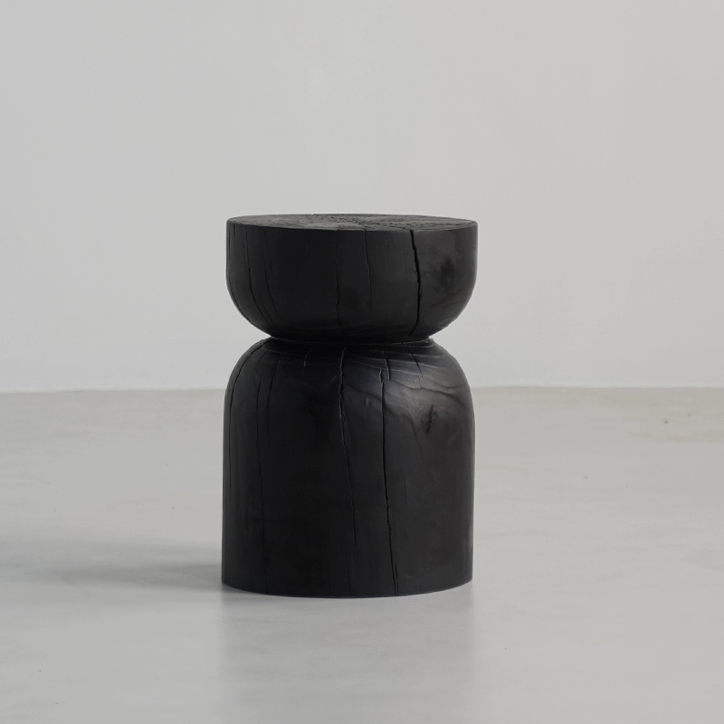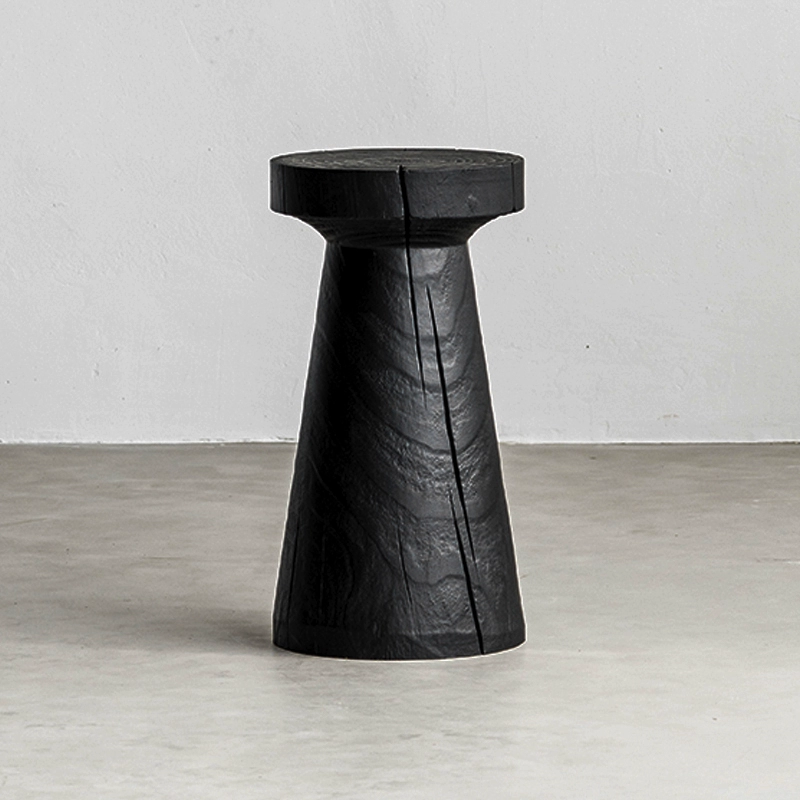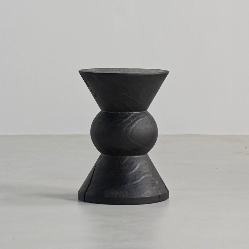 | nameOriginal | Wabi-sabi style black solid wood sofa with several corners and hourglass-shaped log pillars, bedside stool and bedside stool, creative ornaments for B&B |