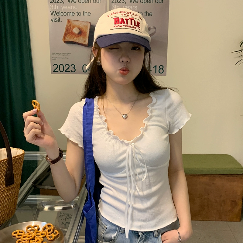 | nameOriginal | Women's ear-cut slim design short-sleeved T-shirt |