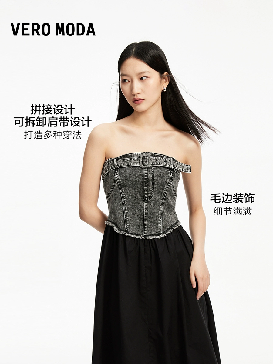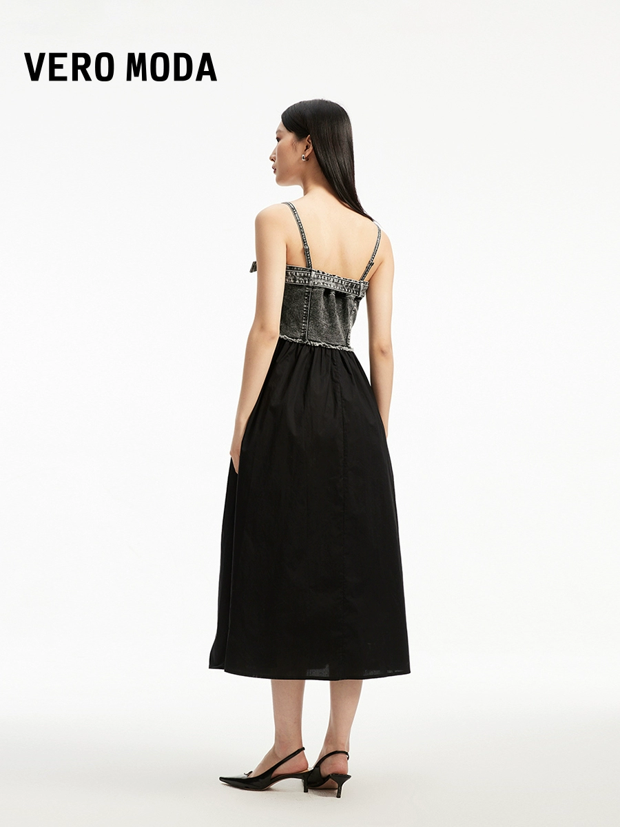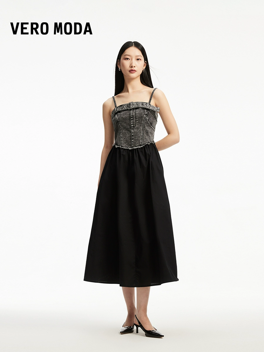 | nameOriginal | Vero Moda Ole dress 2024 summer new style suspender denim patchwork waist A-line street hot girl style |
