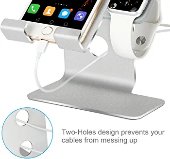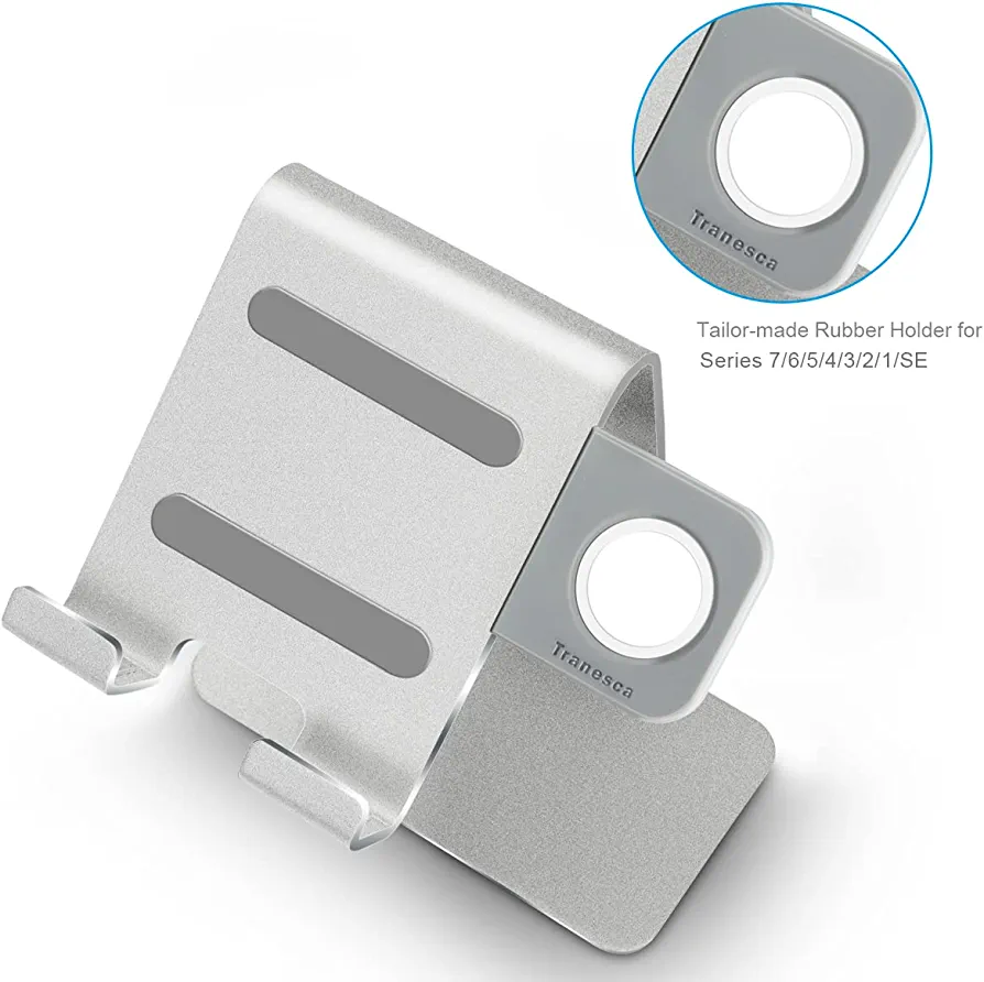 | nameOriginal | Tranesca 2 in 1 Charging Stand for Apple Watch Series 8/7/6/5/4/3/2/1/SE (38mm/40mm/41mm/42mm/44mm/45mm) and Compatible with iPhone of All Series – Silver-Must Have Watch Accessories |