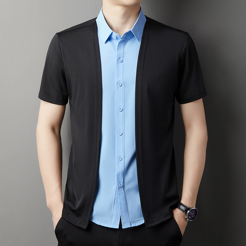 | nameOriginal | 2024 Summer New Men's Fake Two-piece Shirt Short-sleeved Light Mature Casual Solid Color Thin Half-sleeved Shirt for Men |