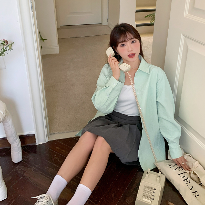 | nameOriginal | New texture shirt for women chubby girl plus size loose outer wear front short back long design sunscreen cardigan 62826 |