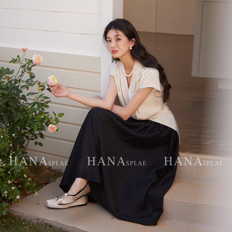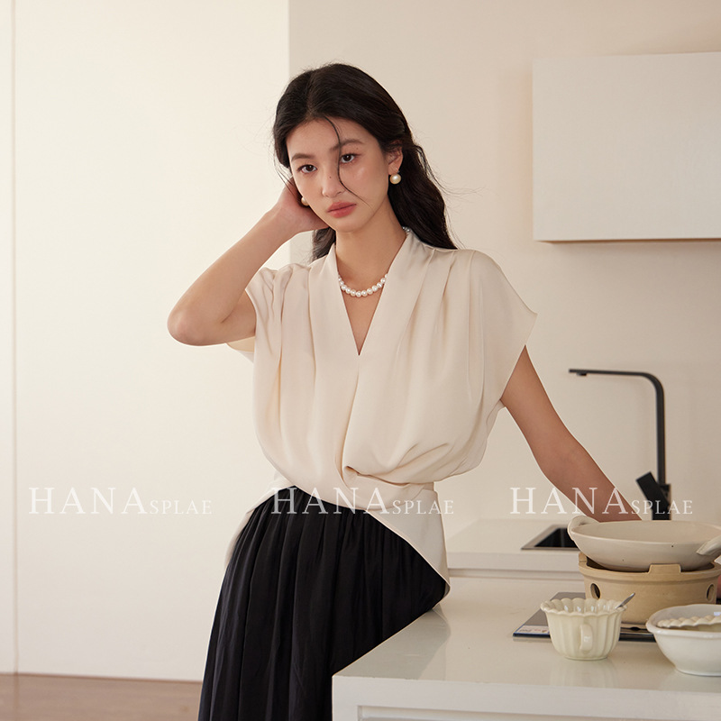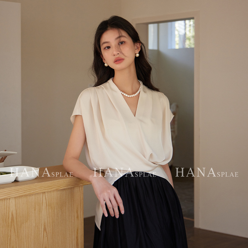 HANNA with 2024 Summer New Gorgeous Rear Cross V-Neck Design Top Women's Pullover Shirt 16013