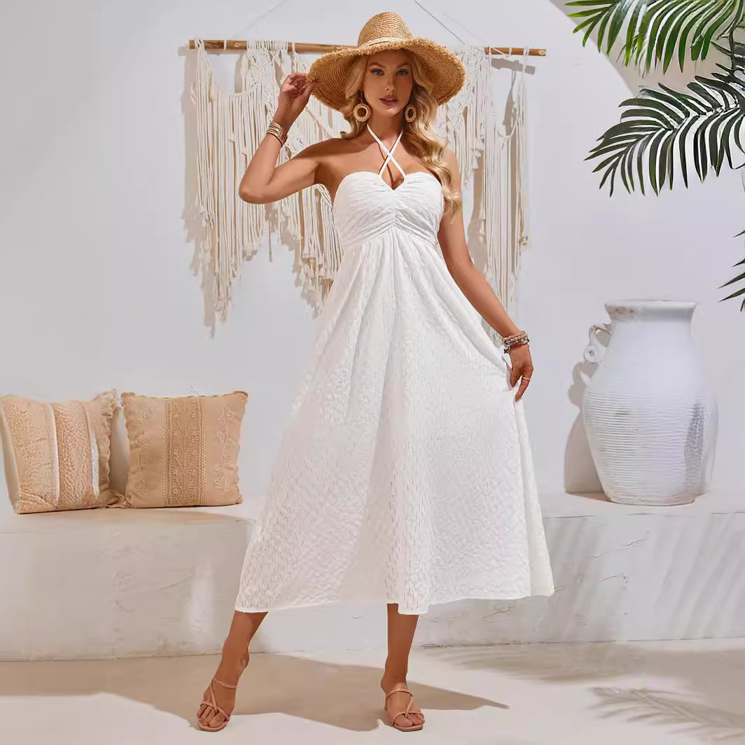 | nameOriginal | Independent station European and American self-designed new women's clothing summer hot sale cross-border fresh V-neck halter strap dress |