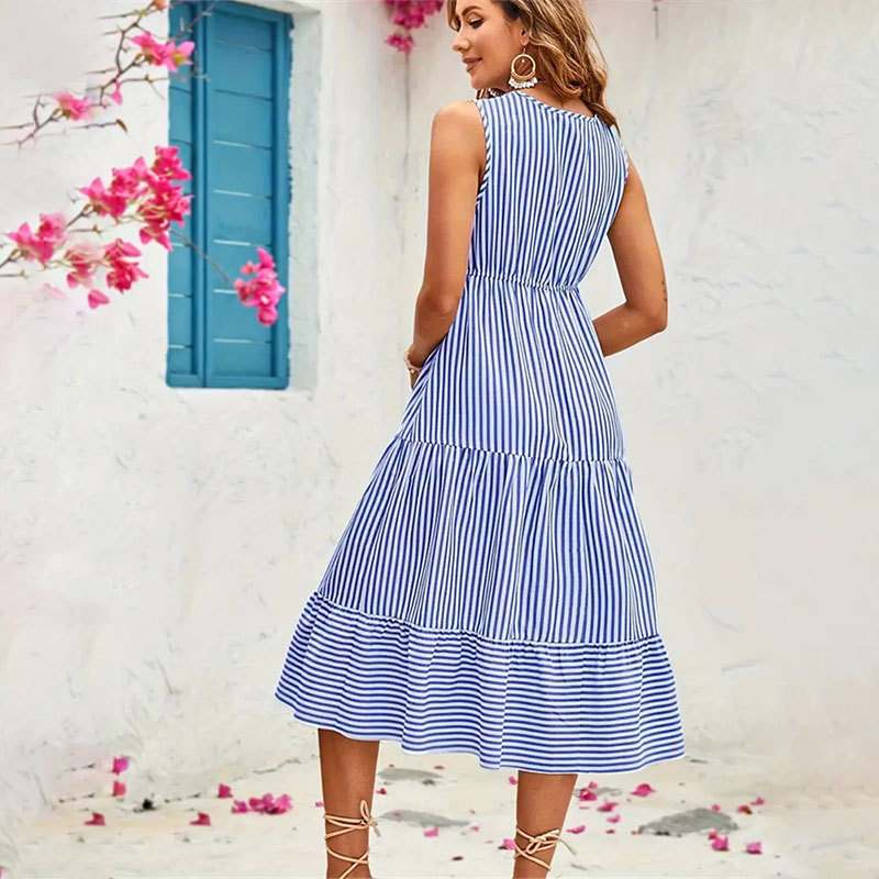 | nameOriginal | Cross-border Button Striped Sleeveless Long dress Spring and Summer Women's Design Sense Cake Skirt Foreign Trade Women's Skirt Women's Skirt |