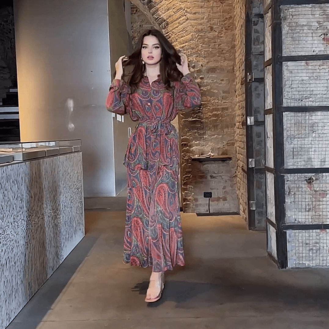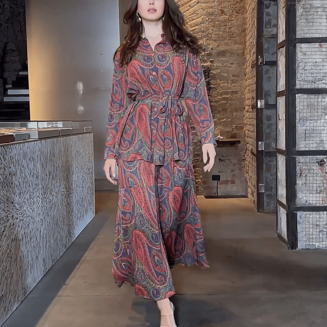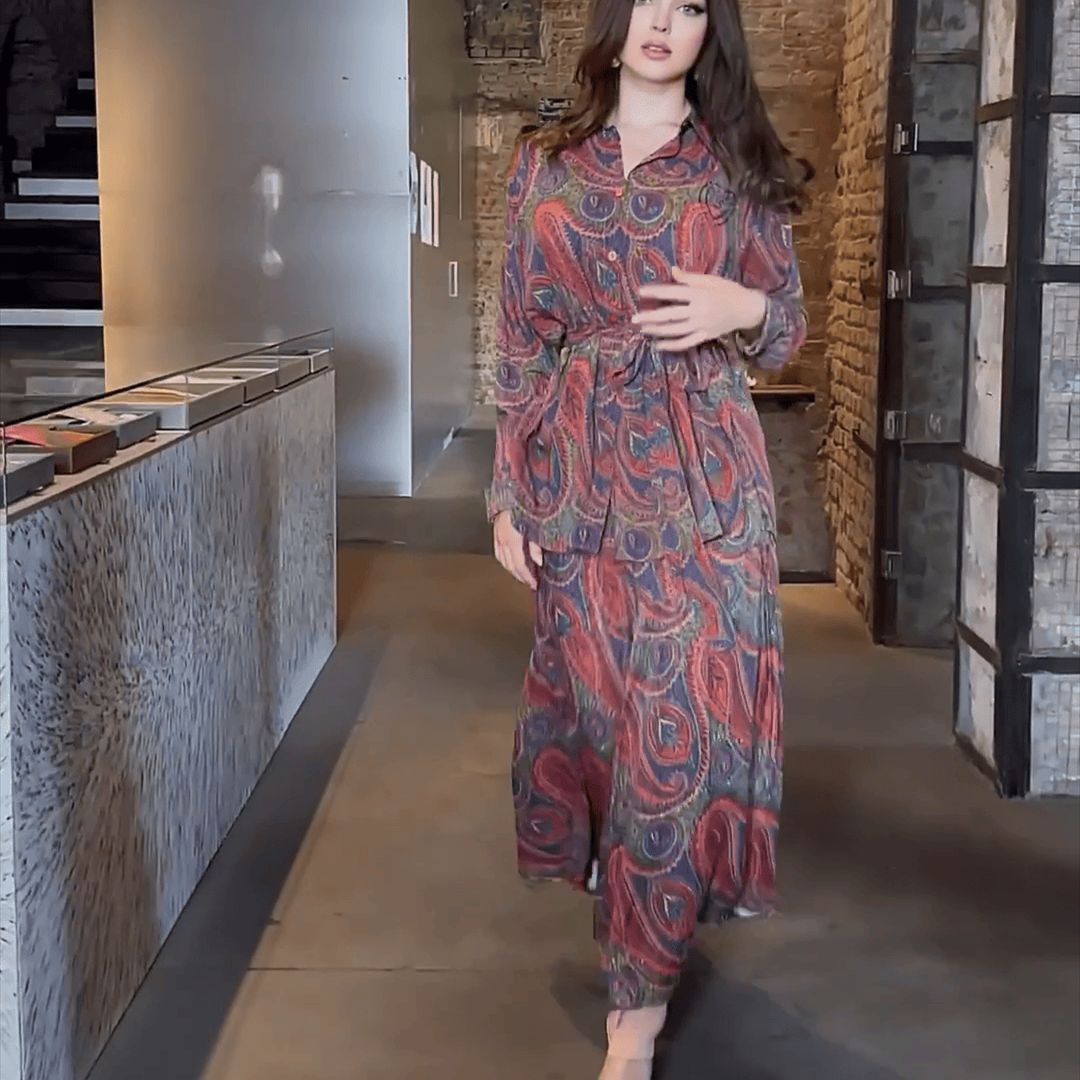 | nameOriginal | In stock skirt suit Middle East cross-border women's clothing 2023 autumn new fashion temperament printed long sleeve shirt |