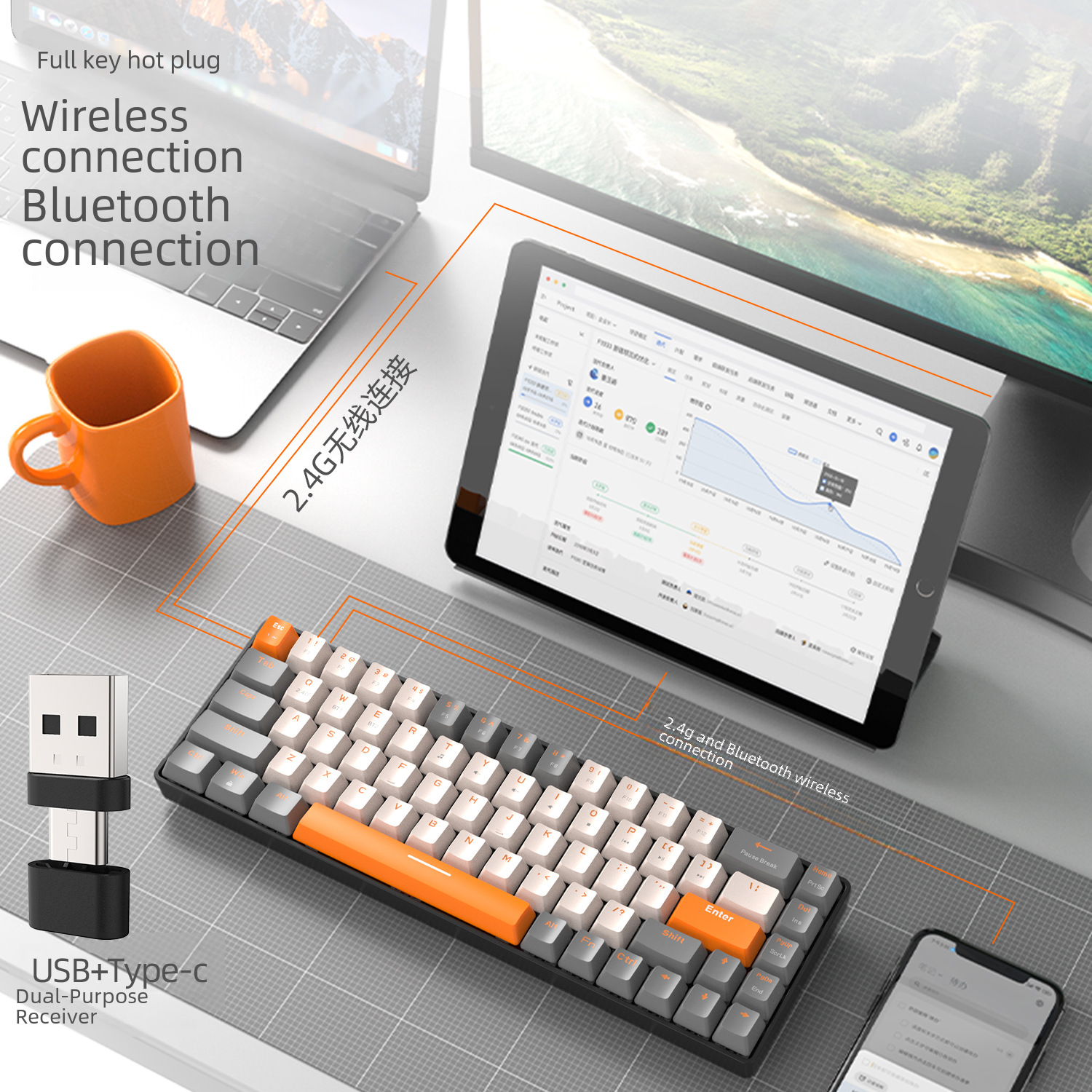 | nameOriginal | Free Wolf K68 Bluetooth wireless dual-mode mechanical keyboard customized color matching game hot-plug mechanical keyboard |