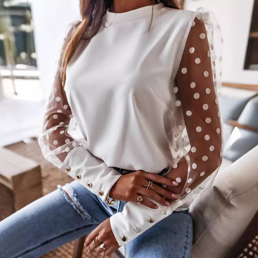 | nameOriginal | 2024 foreign trade women's clothing European and American European Station Amazon cross-border spring and summer solid color mesh stitching long-sleeved T-shirt |