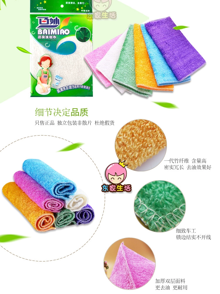 | nameOriginal | 5 Baimiao generation bamboo fiber dish towels, non-stick oil rags, kitchen cleaning towels, double layer thickened dish cloths |