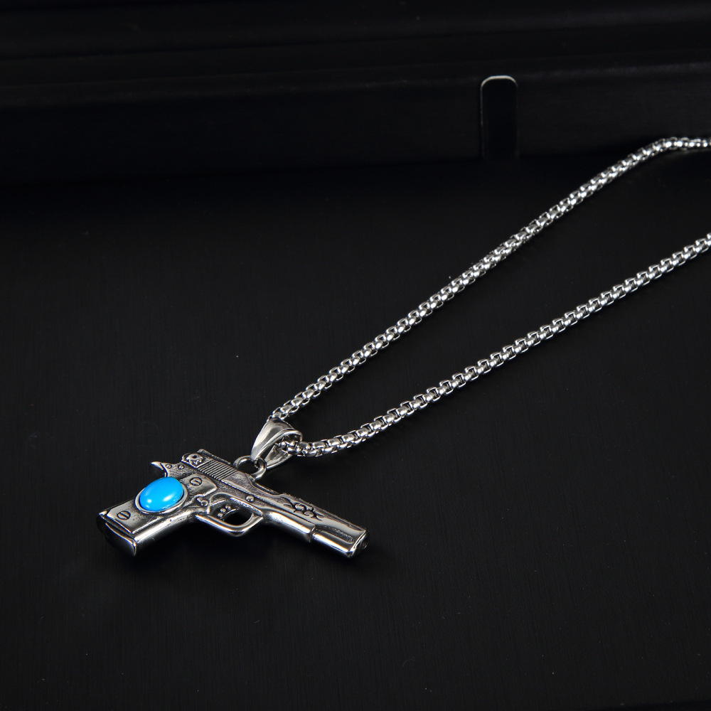 | nameOriginal | European and American new turquoise pistol pendant men's punk necklace cross-border supply Amazon factory direct sales |
