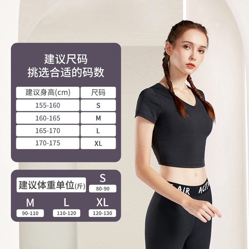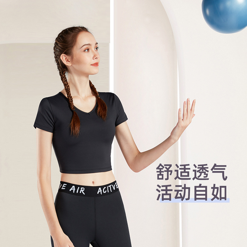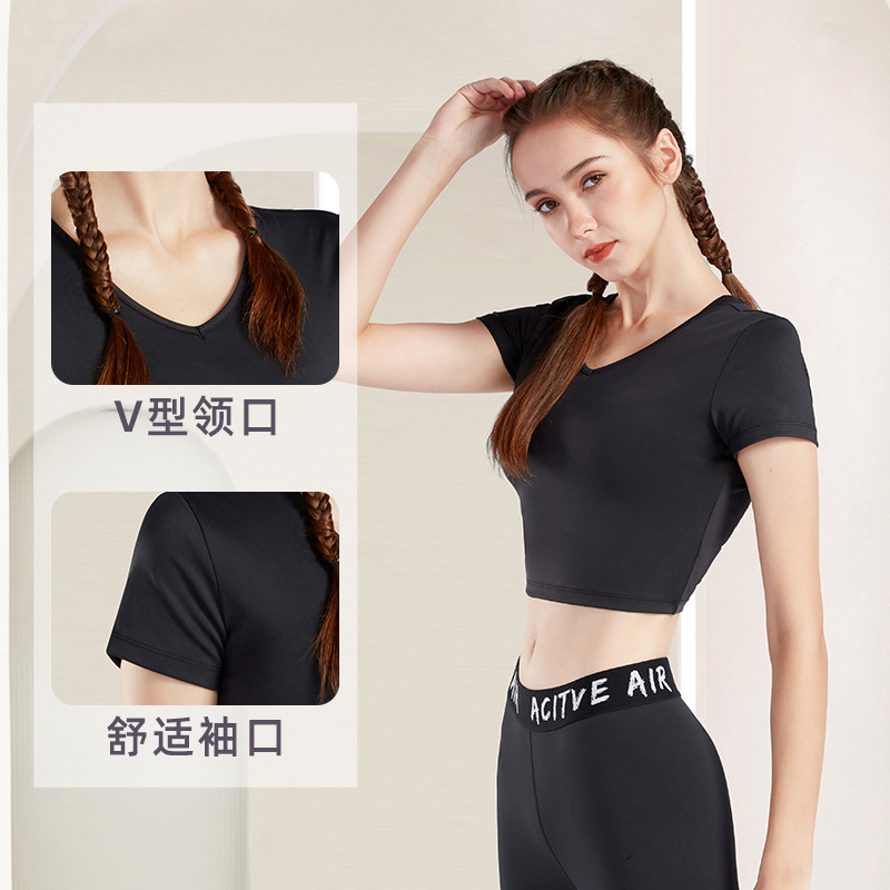 | nameOriginal | Slim fit slimming waist-tight pure hot girl V-neck T-shirt black sports fitness yoga clothes short sleeve t-shirt for women |
