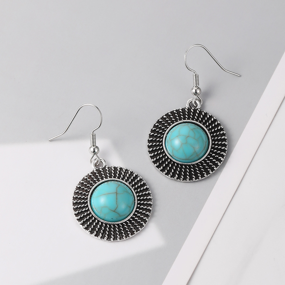 | nameOriginal | European and American cross-border Amazon new retro earrings fashion personalized earrings turquoise round earrings ear hook wholesale |