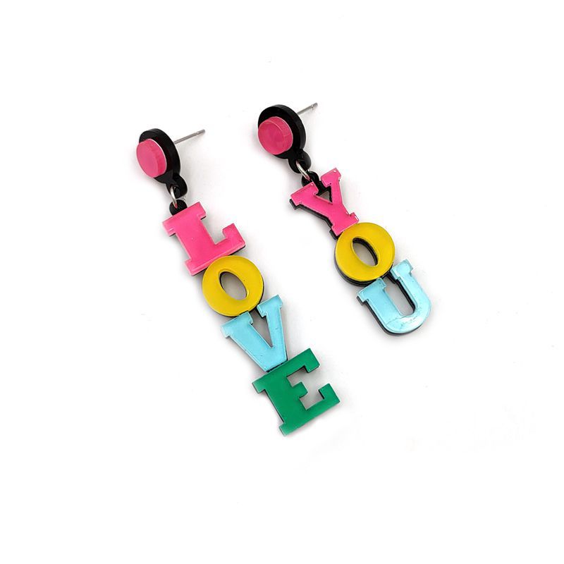 | nameOriginal | European and American cross-border color LOVE YOU stud earrings fashion acrylic women's letter earrings New |