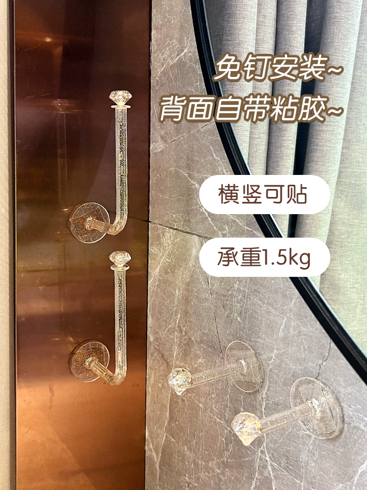 Light luxury, transparent hook -free hair circles, long hook sticky glue, strong head rope head hoop storage shelf wall hanging