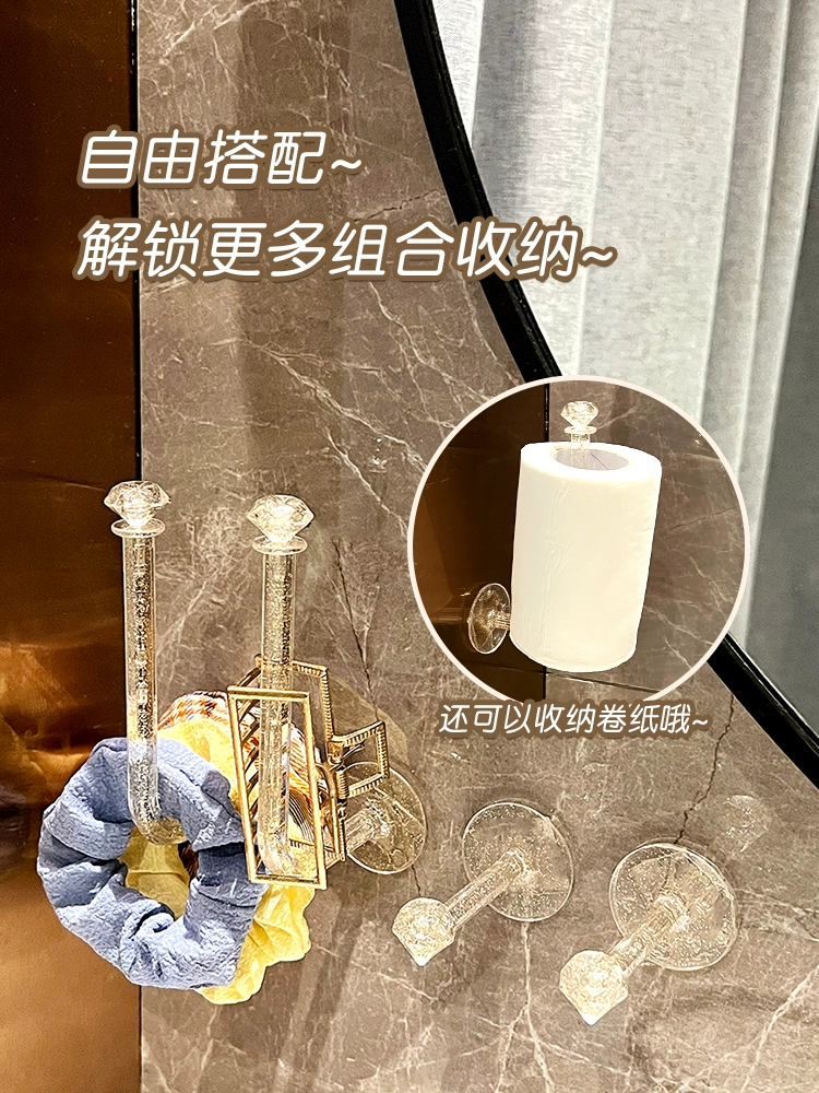 Light luxury transparent hook without punching hair band storage long hook viscose strong headband hair band storage shelf wall hanging