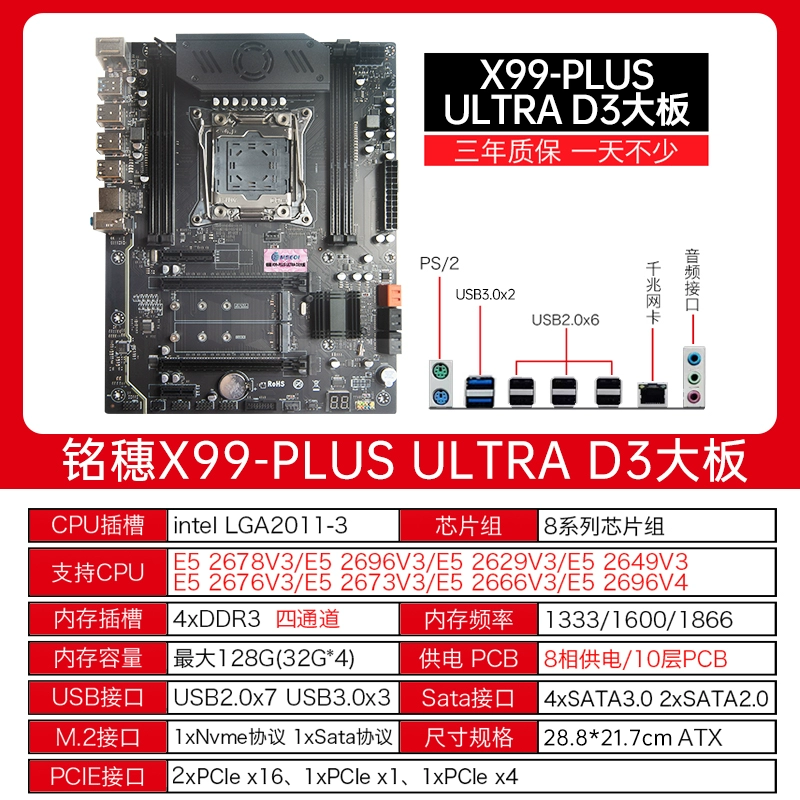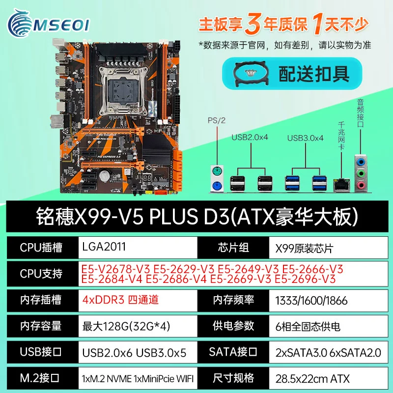 | nameOriginal | Brand new three-year warranty Mingsui X99 dual dual-way server motherboard CPU set e5 2696v3 2680V4 |