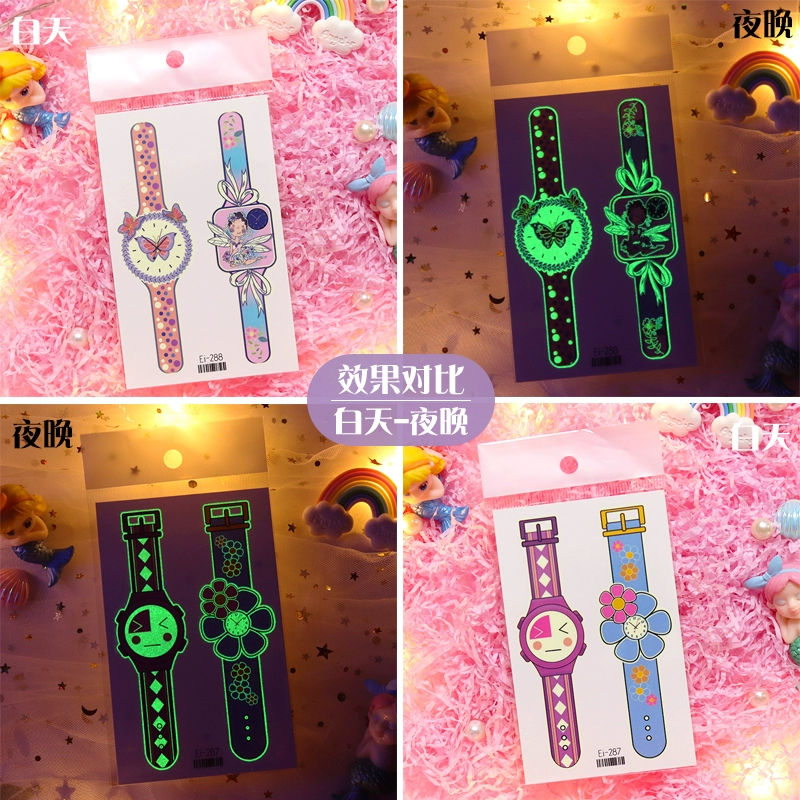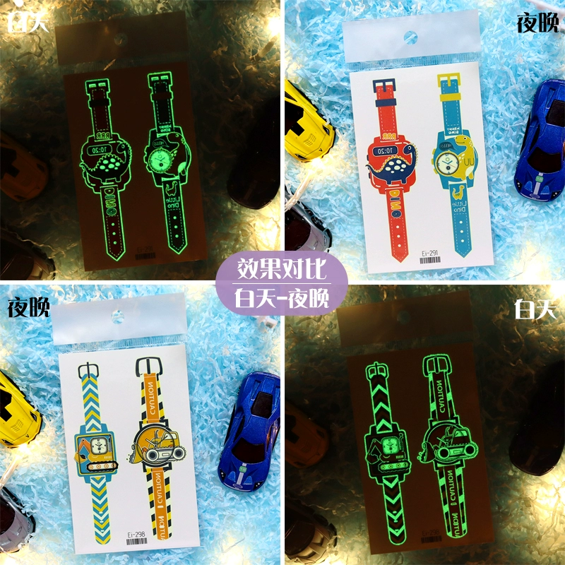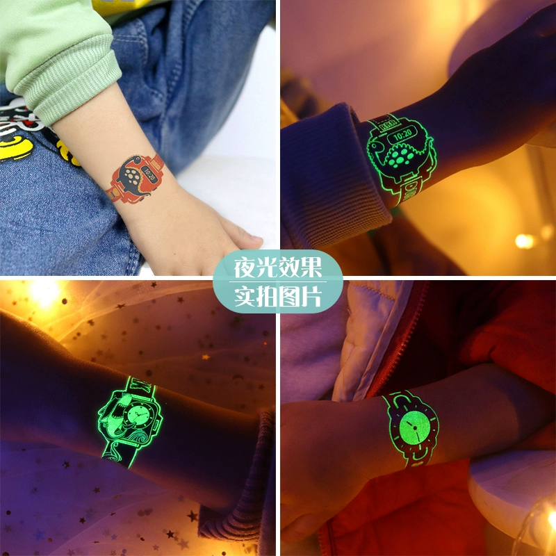 | nameOriginal | Glow-in-the-dark children's tattoo stickers for boys and girls cartoon dinosaur mermaid unicorn watch environmentally friendly watermark stickers |