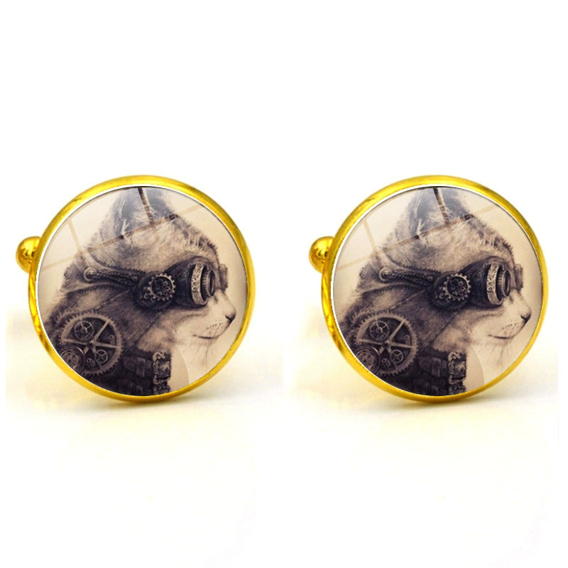 | nameOriginal | New accessories for export Steampunk cat photo time gem French men's shirt cuff cuff pins |