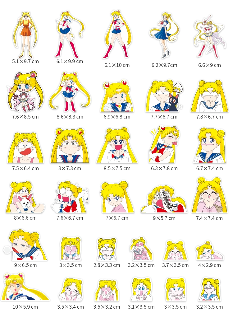 | nameOriginal | 32 pictures of Sailor Moon Water Ice Moon Car Stickers Cartoon Anime Laptop Mobile Phone Scratch Stickers Helmet Stickers |