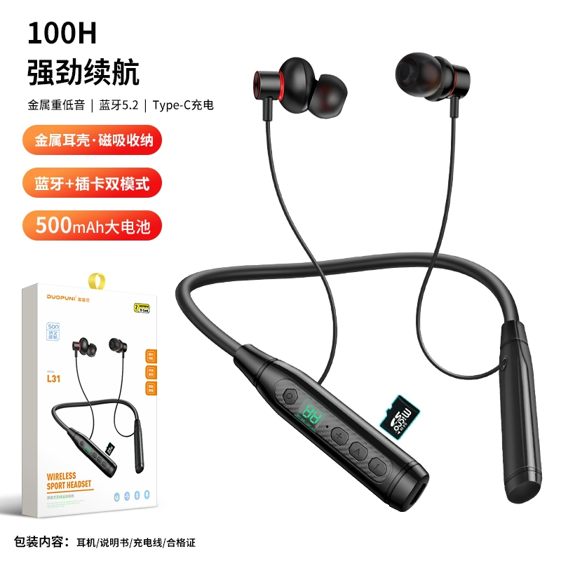 | nameOriginal | L31 large battery display 500 mAh in-ear long-lasting Bluetooth headset wireless neck-mounted sports headset |