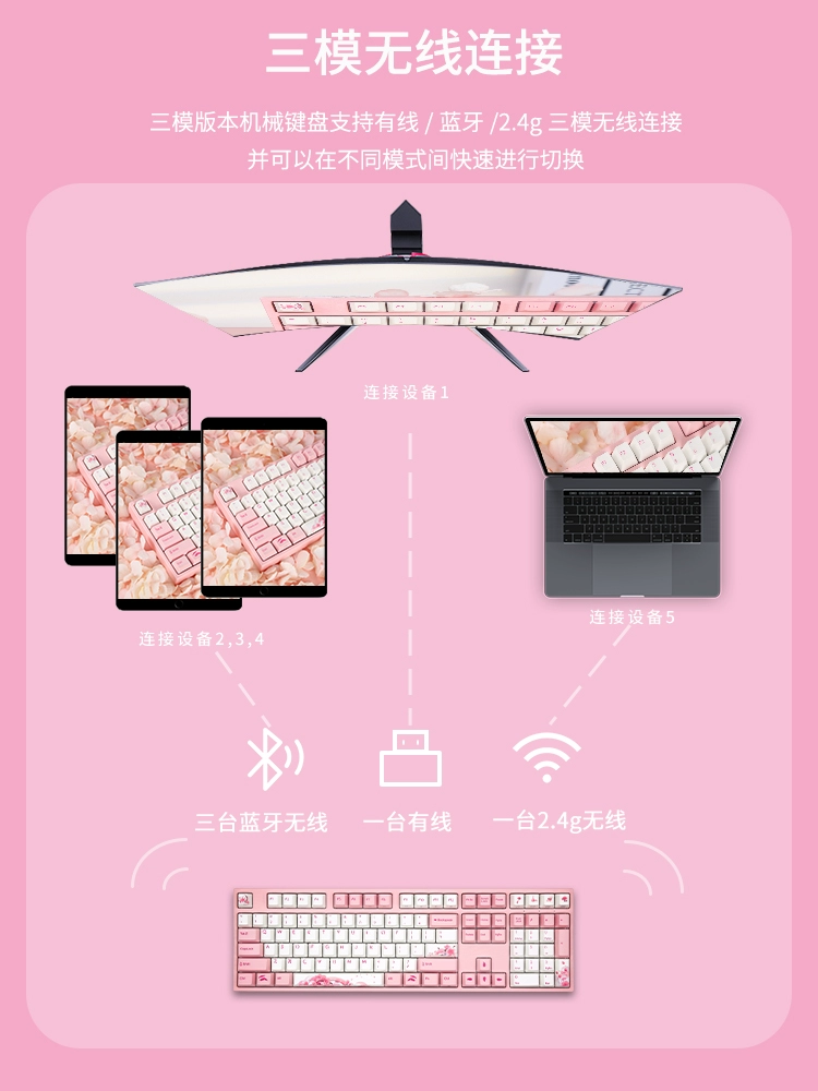 varmilo Amilo Sakura mechanical keyboard falling cherry wireless Bluetooth wired girls office game electrostatic capacitance