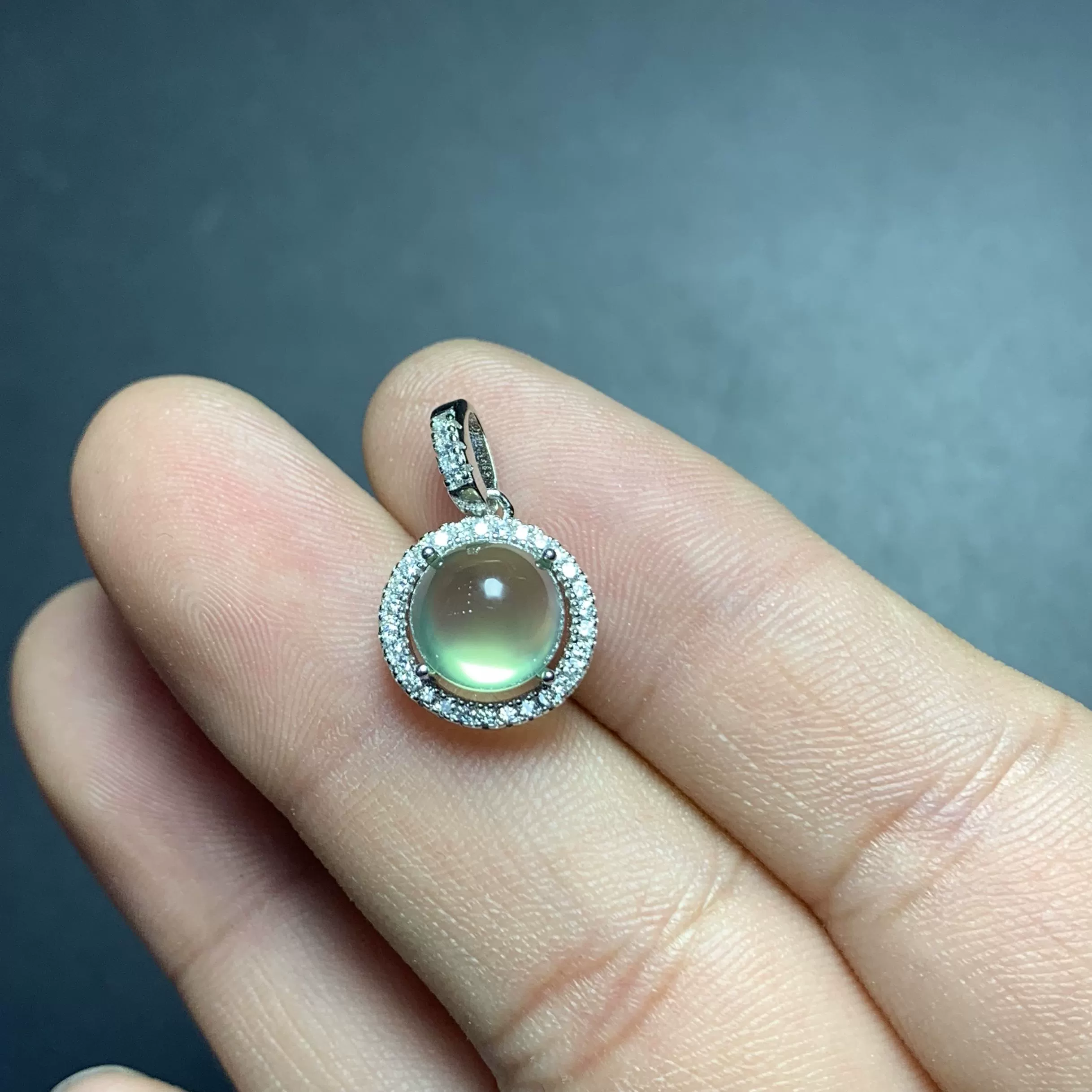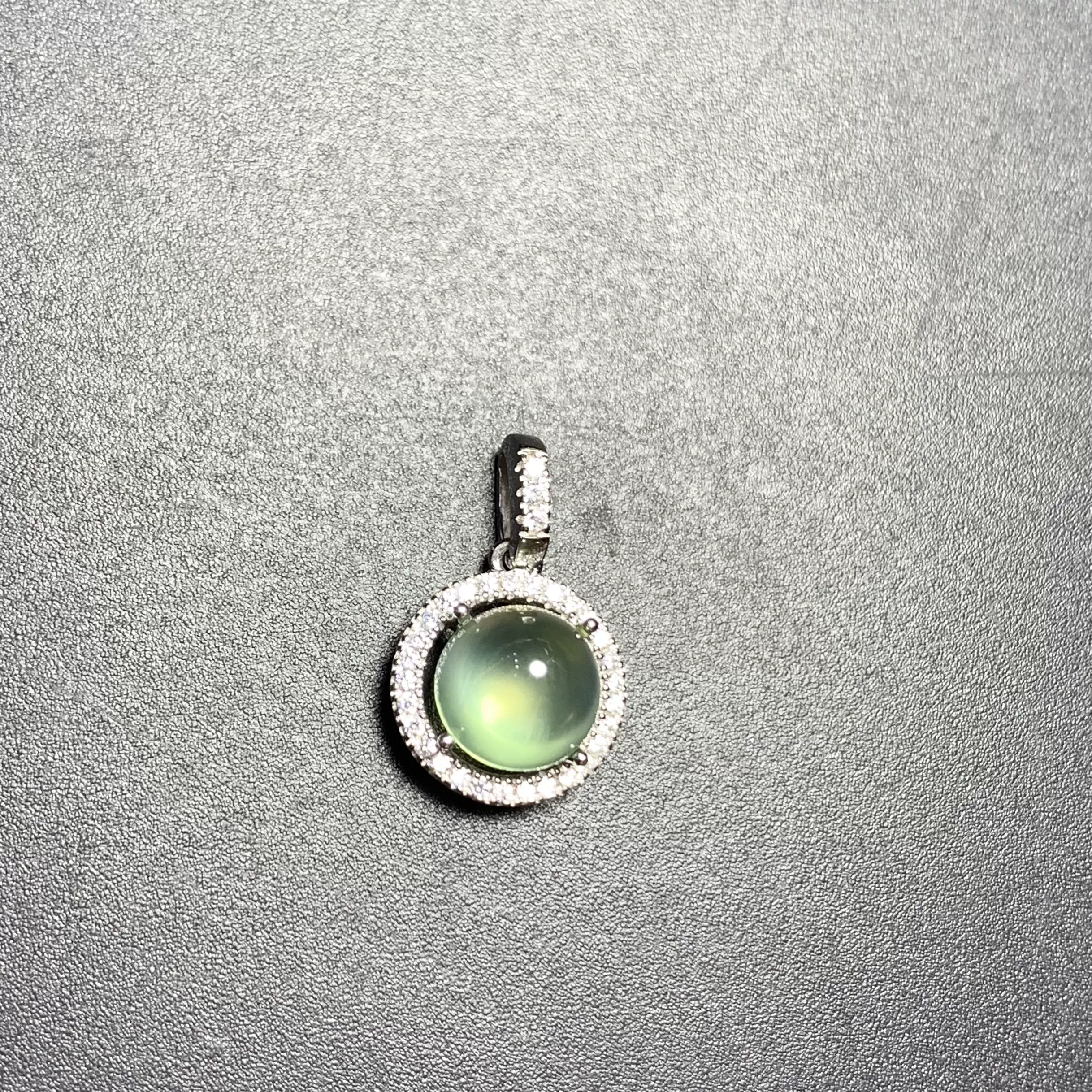 | nameOriginal | 925 silver natural prehnite pendant live loose stone 8MM 2.5 carats small fresh |
