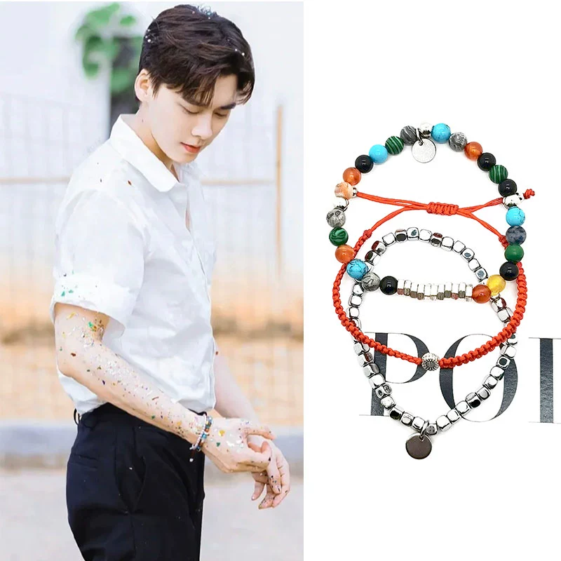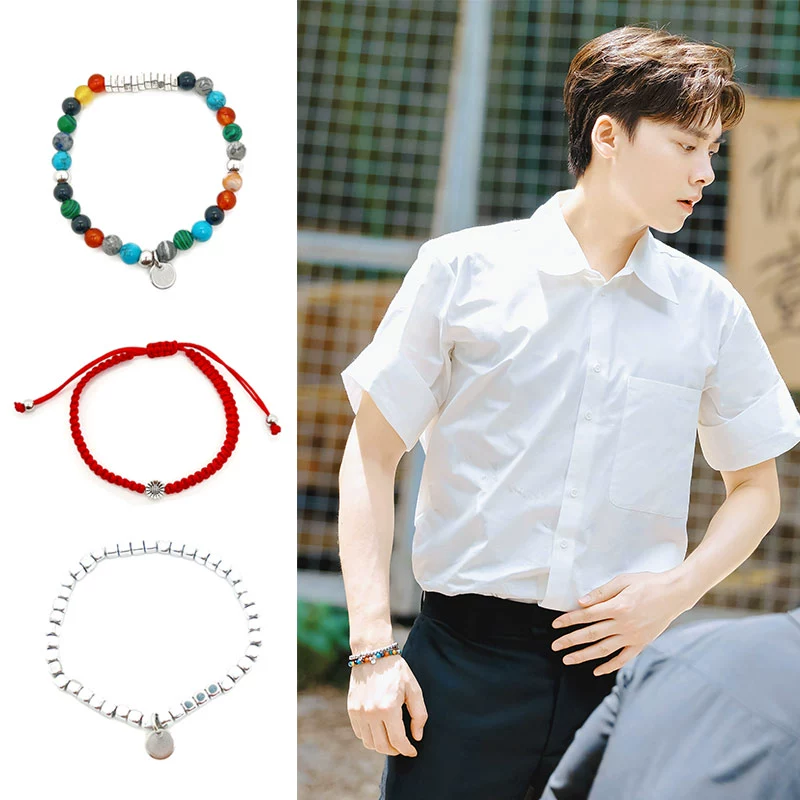 Li Yifeng’s same color natural stone tiger bile red rope set bracelet ring trendy cool couple gift final winner