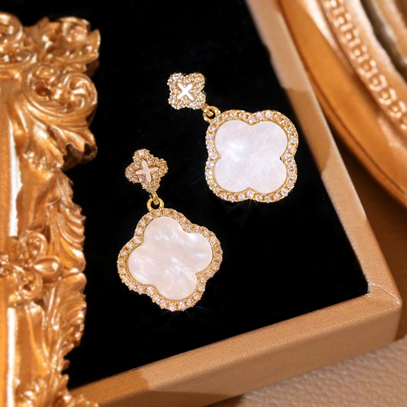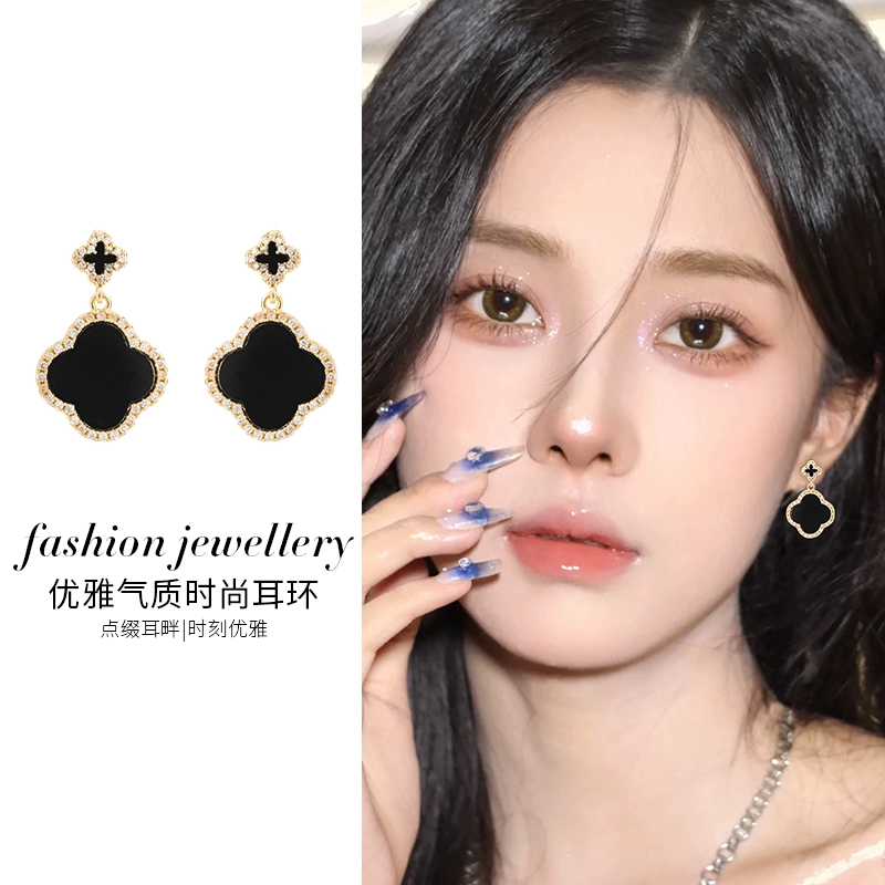 | nameOriginal | Diamond four-leaf clover earrings for women, sterling silver, exquisite, simple, cold style, light luxury, niche earrings, design earrings, autumn and winter |