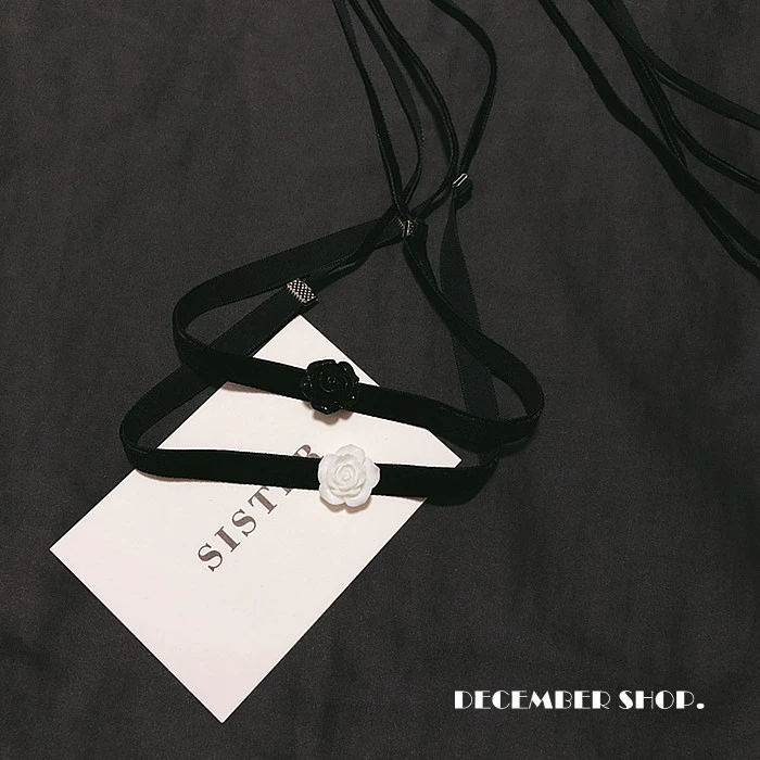 | nameOriginal | Korean style black and white small flower dark soft girl rose strap tie choker neck strap female clavicle chain |