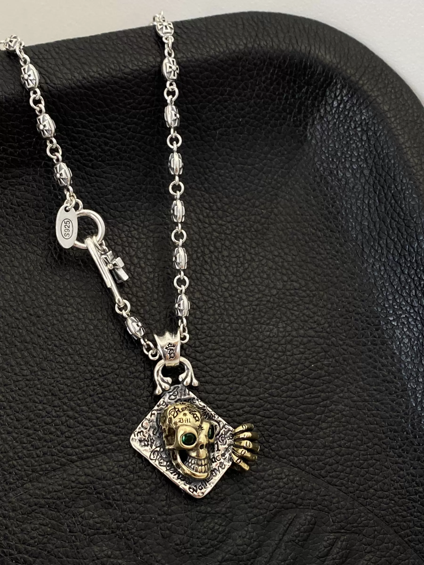 | nameOriginal | Different silversmiths 925 sterling silver skull graffiti letter pendant retro European and American punk hip-hop trend necklace for men and women |