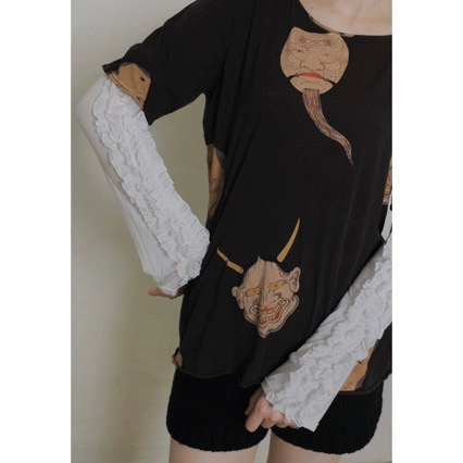 | nameOriginal | Japanese designer CDG style lace pleated loose bell sleeves cool sun protection ice sleeves spf50 black and white |