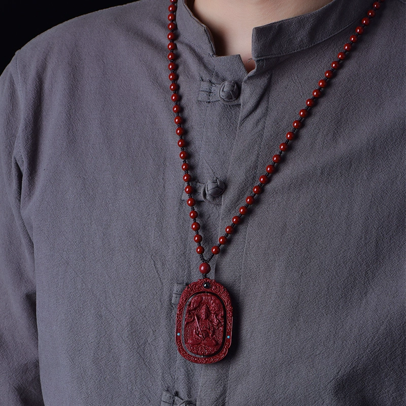 Cinnabar natal Buddha pendant zodiac pendant for men Manjushri Tathagata Puxian Bodhisattva Guanyin amulet necklace for women