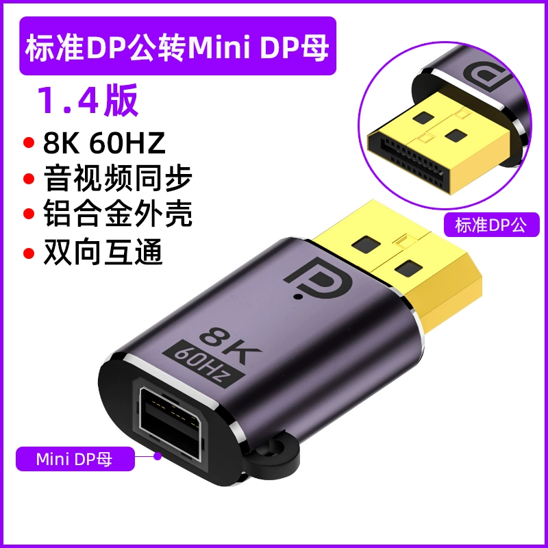 | nameOriginal | Minidp to DP adapter male to female mini DP converter version 1.4 8K@60HZ Thunderbolt 2 large DP to small dp conversion head 4K144HZ HD video cable DP male to minidp female port |