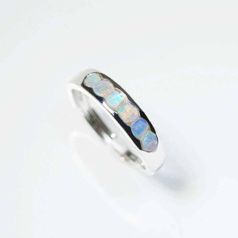 Opal ring popular sterling silver natural Australian rough stone men and women simple natural original ring Yiran
