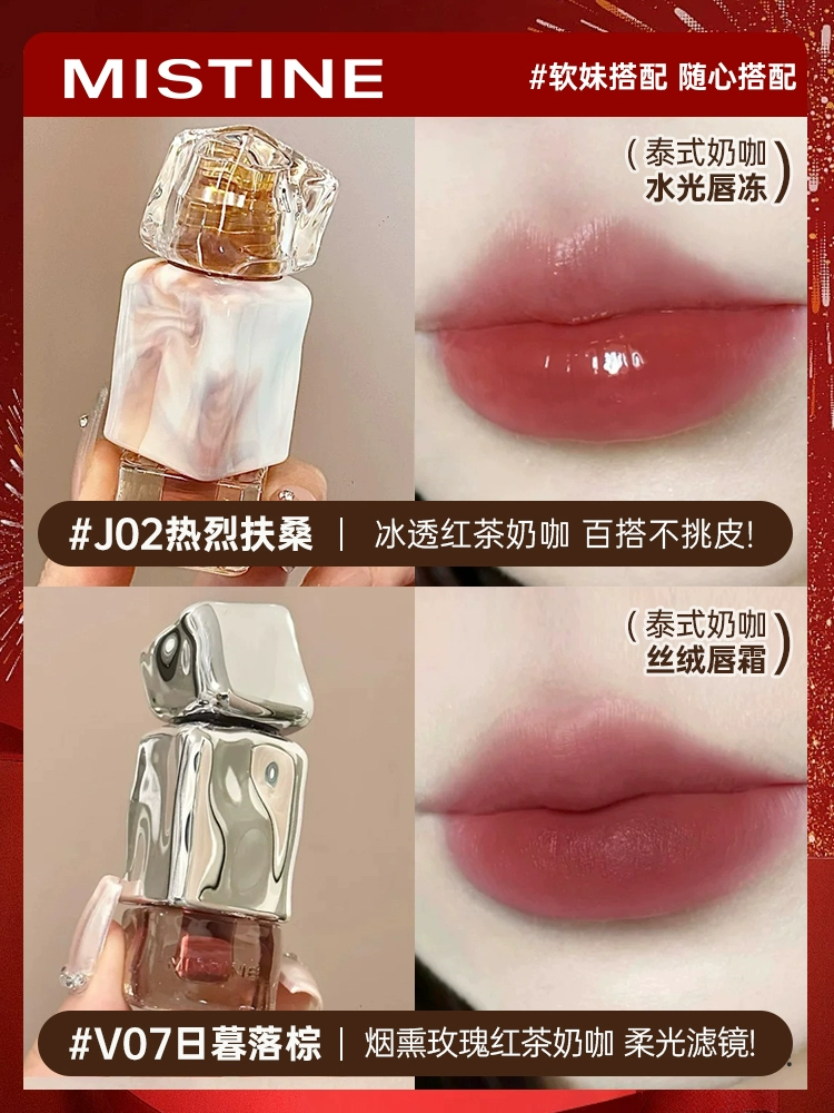| nameOriginal | Mistine lip glaze Mistine lipstick j05 Mistine moisturizing mirror nishuini lip gloss v08j08 slogan |