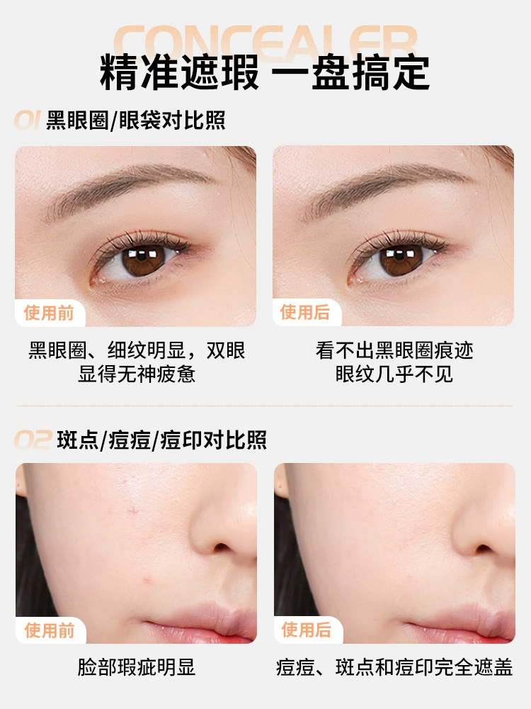 | nameOriginal | Gemeng three-color concealer covers facial spots, acne, tattoos, acne marks, dark circles and tear troughs, powerful concealer cream |