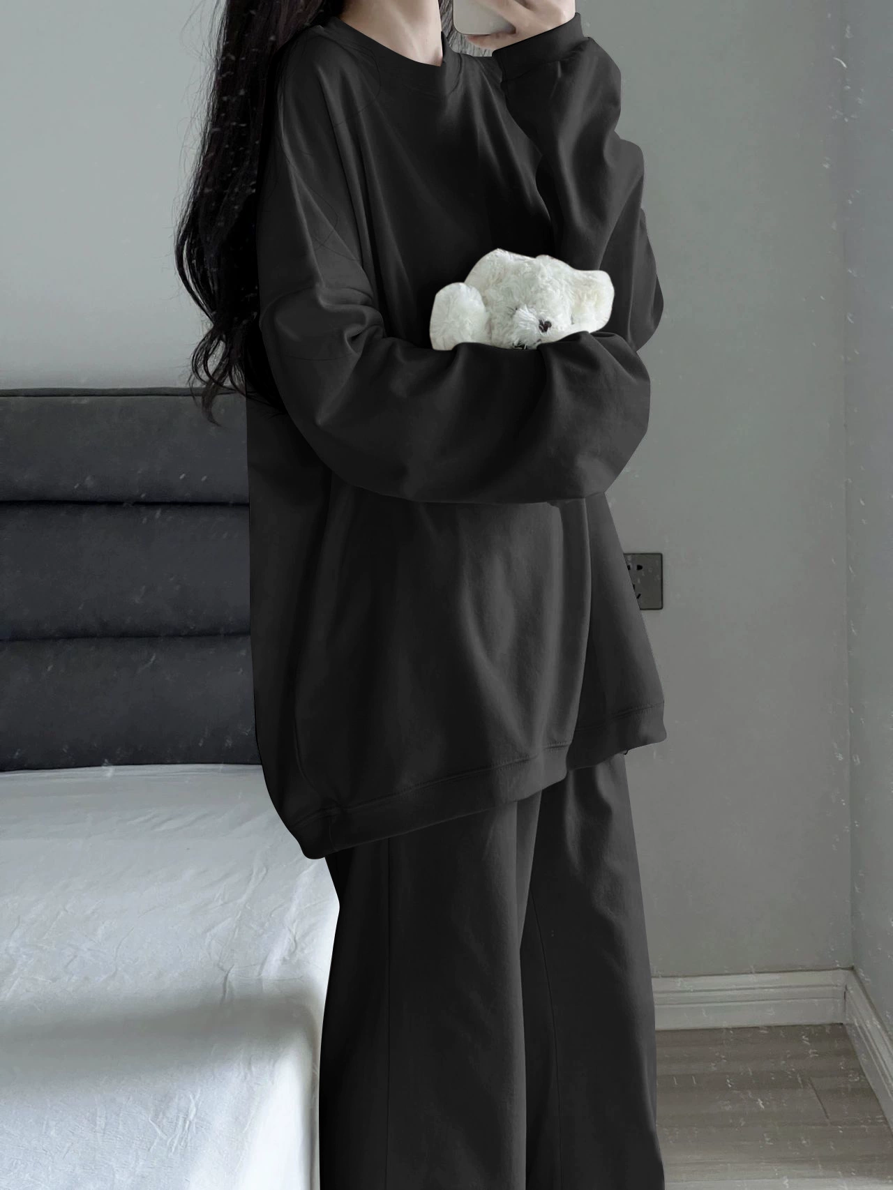 | nameOriginal | Winter high-end solid color German velvet pajamas for women plus velvet and thickened winter plush home clothes large size suit can be worn outside |
